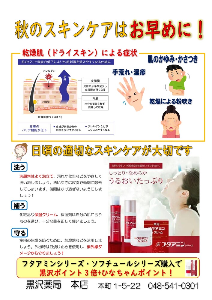 早めのスキンケアをして、これからの乾燥の季節をきれいな肌で過ごしましょう!