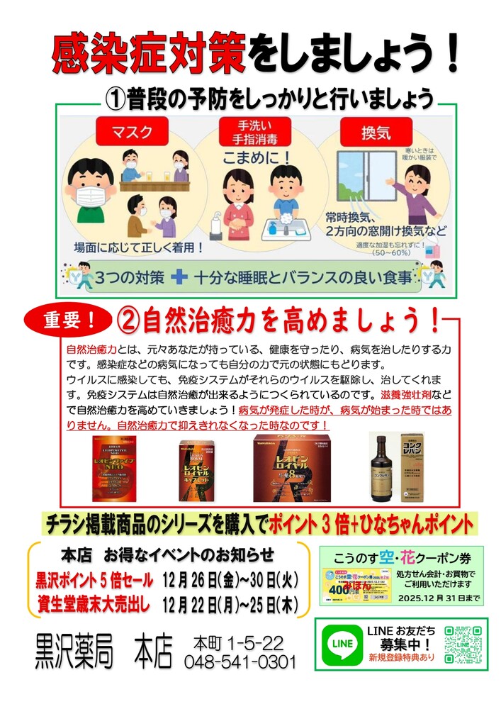 鴻巣市内でもインフルエンザなどの感染症が大流行しております。